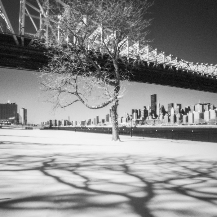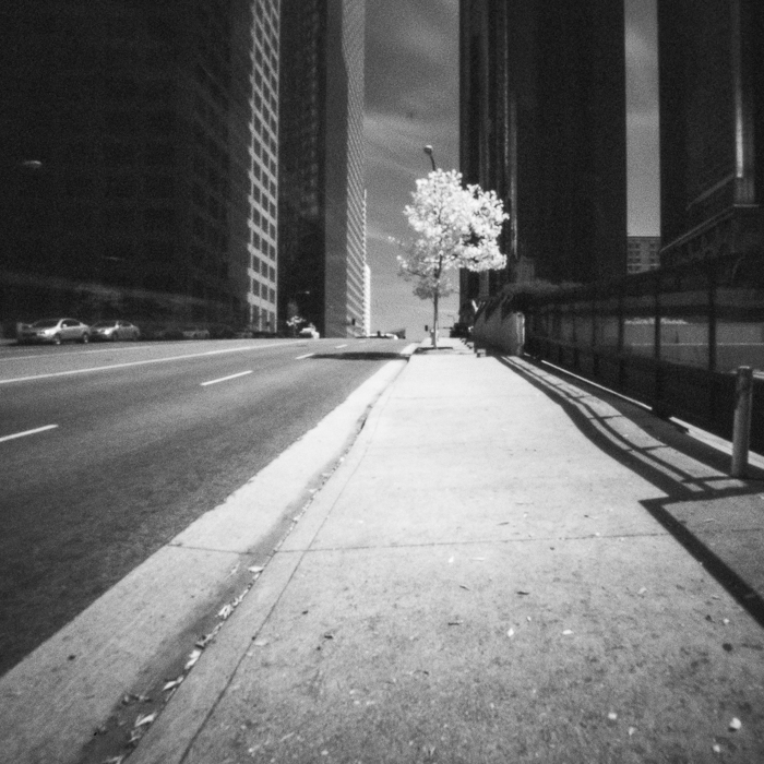 With the help of a black & white infrared film, the visibility of the trees is amplified and extended to a dimension of reality, which is thus not visible to humans. At the same time, the special charm of pictures from a pinhole camera neutralizes the intrusion of urban details. The 76 images of the whole series were created in Germany, France, England, Poland, USA, China and Japan in 2014 and 2015.